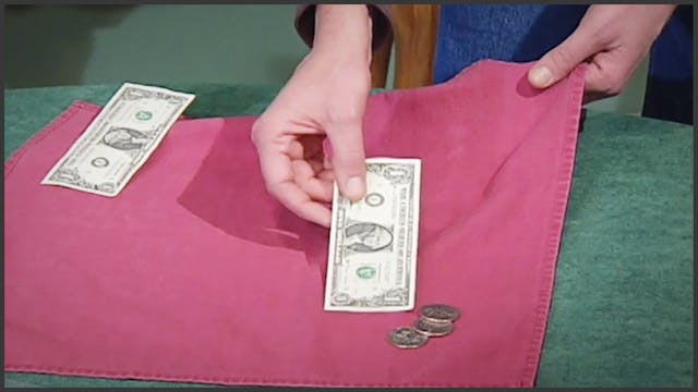 This trick requires four dollars and a napkin. Larry teaches how to transport coins so discreet and quickly that your audience will have no choice but to believe that the silver grew wings. It's all about what is going on just beneath the surface.