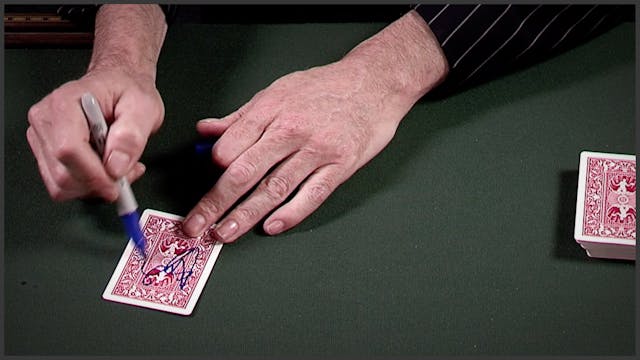 An astonishingly effective technique that allows you to covertly catch a glimpse of the spectator's card. As always in card magic, this move is accomplished under the cover of doing something else. You will innocently ask the spectator for their autograph and learn everything you need to know.